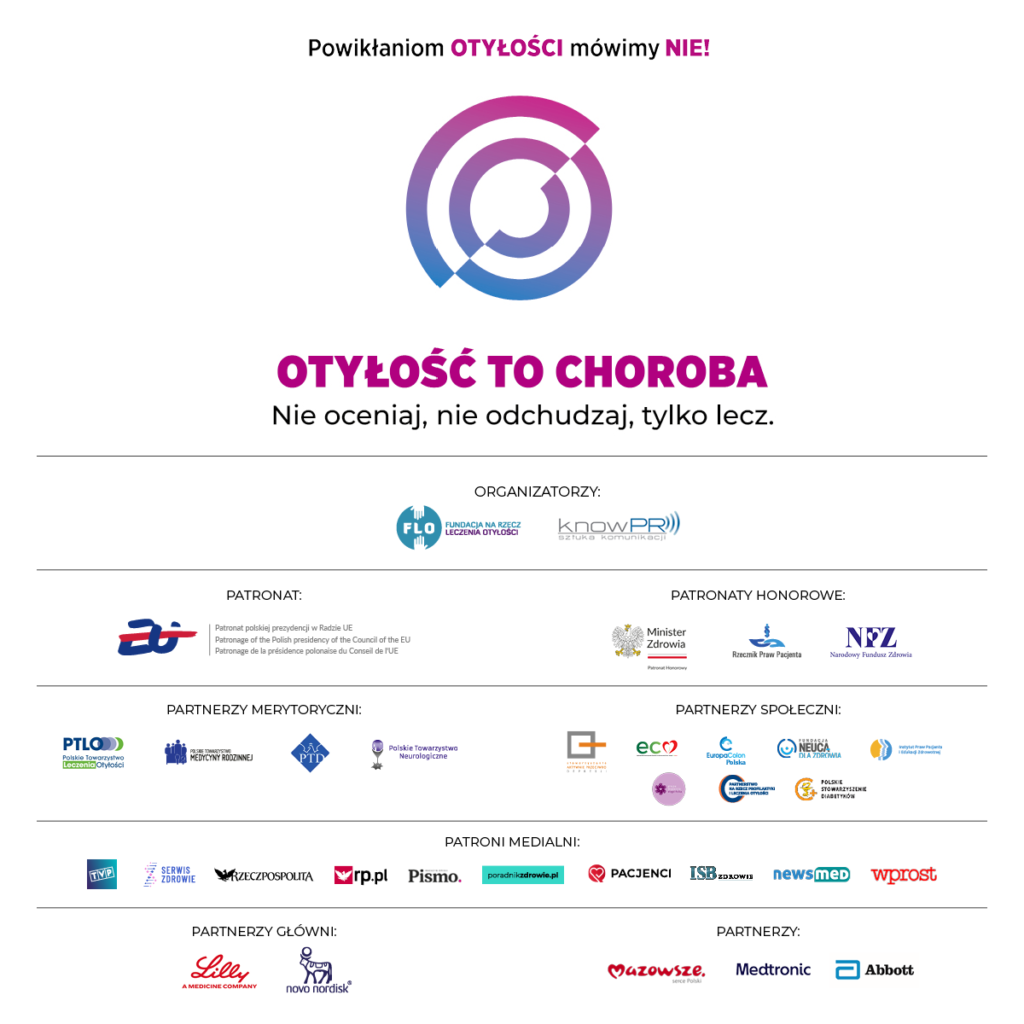 Ruszyła druga edycja ogólnopolskiej kampanii społecznej „Otyłość to choroba. Nie oceniaj, nie odchudzaj, tylko lecz.”, organizowanej przez FLO – Fundację na Rzecz Leczenia Otyłości. W tym roku kampania odbywa się pod hasłem: „Powikłaniom OTYŁOŚCI mówimy NIE” i została objęta Patronatem Ministra do spraw Unii Europejskiej podczas prezydencji Polski w Radzie UE oraz Patronatem Honorowym Ministra Zdrowia, Narodowego Funduszu Zdrowia, Rzecznika Praw Pacjenta i Samorząd Województwa Mazowieckiego.